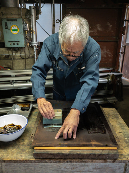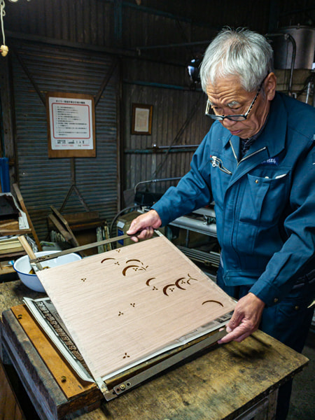 微妙な味わいを持つ新之助上布の絵絣は、こうした工程を経て、一反ずつ丁寧に作られている。